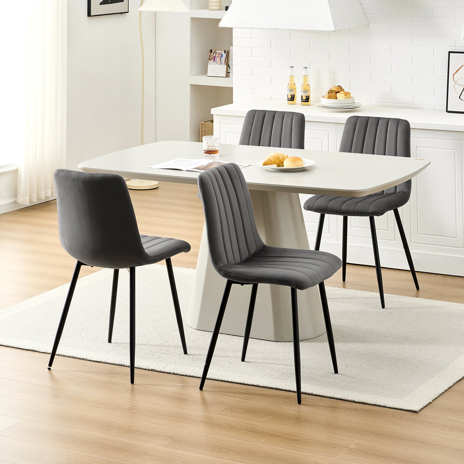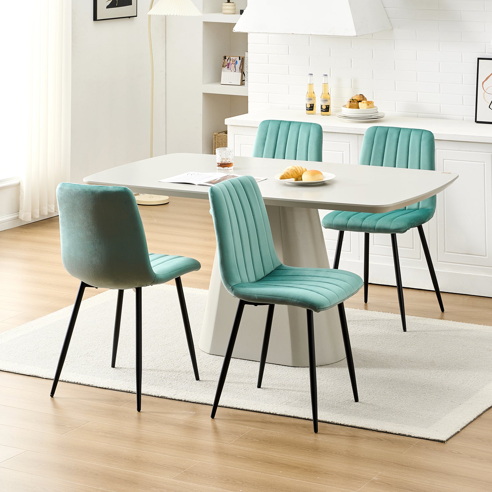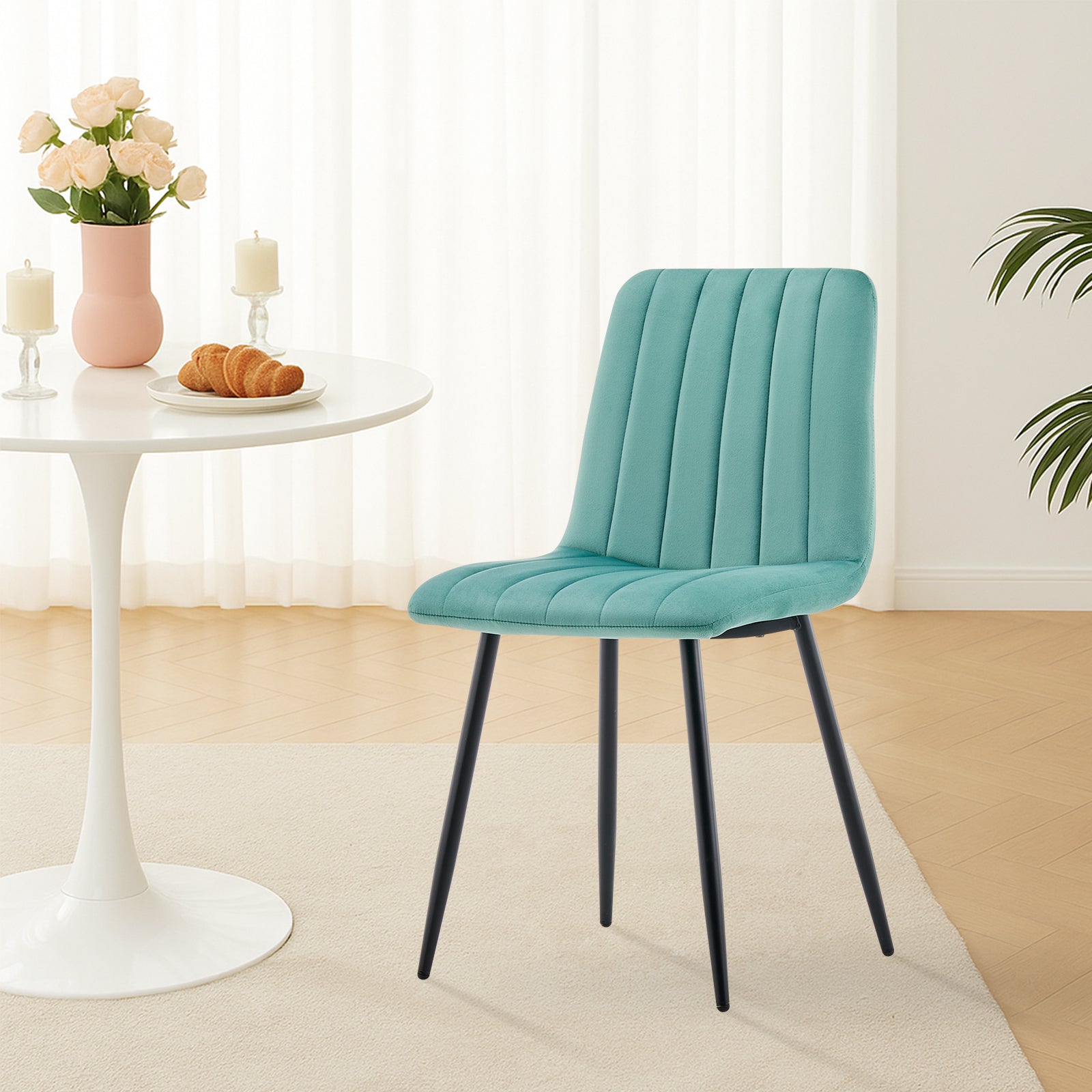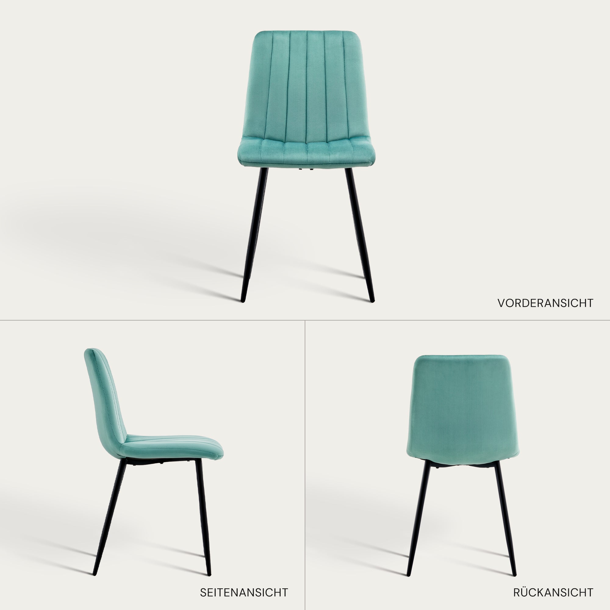 - Hochwertige Materialien: Unsere Esszimmerstühle bestehen aus hochwertigem Samt, der bequem und hautfreundlich ist und ein weiches und angenehmes Sitzgefühl bietet. Die exquisiten Nähte zeigen ein modernes und stilvolles Design und verleihen Ihrem Esszimmer eine elegante Atmosphäre.