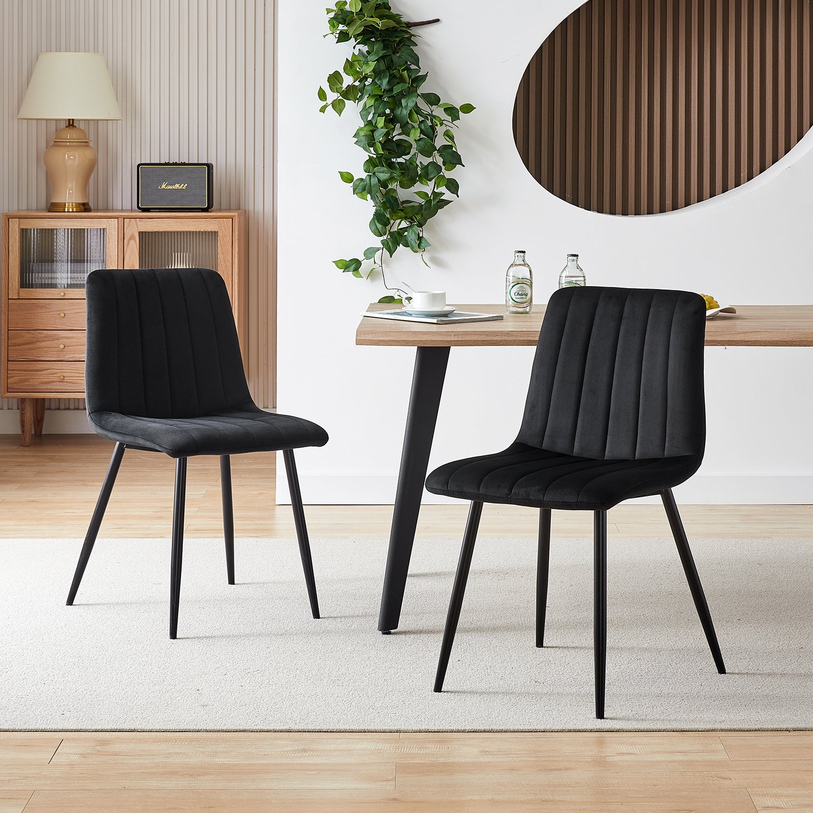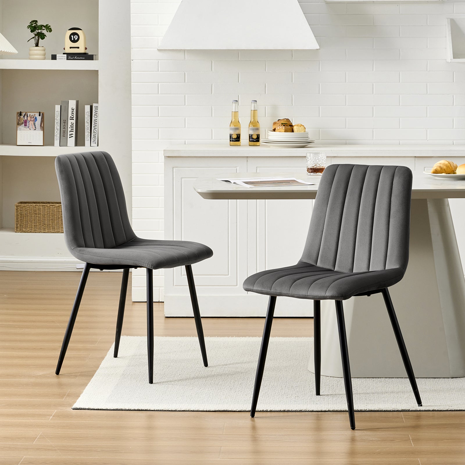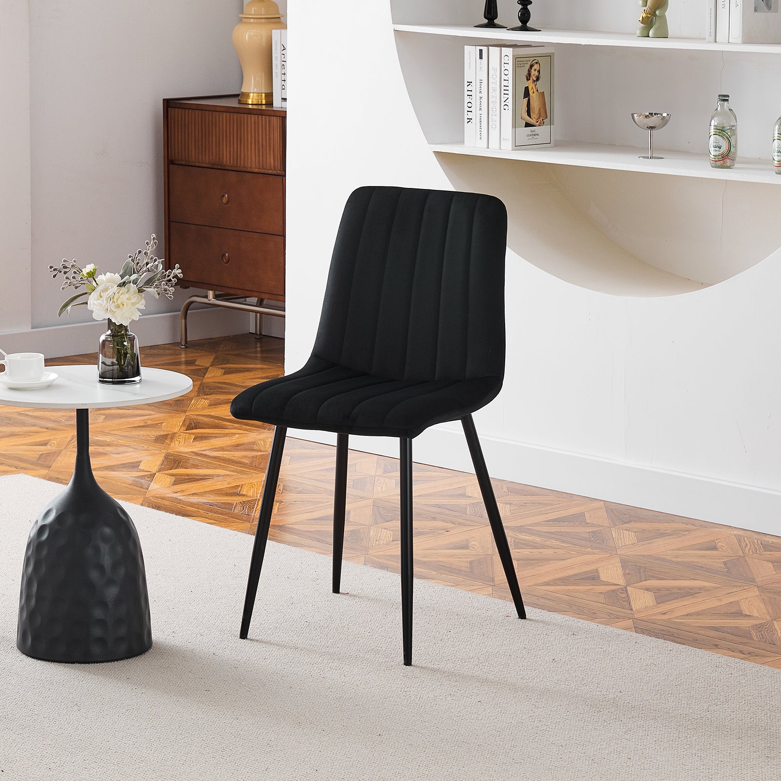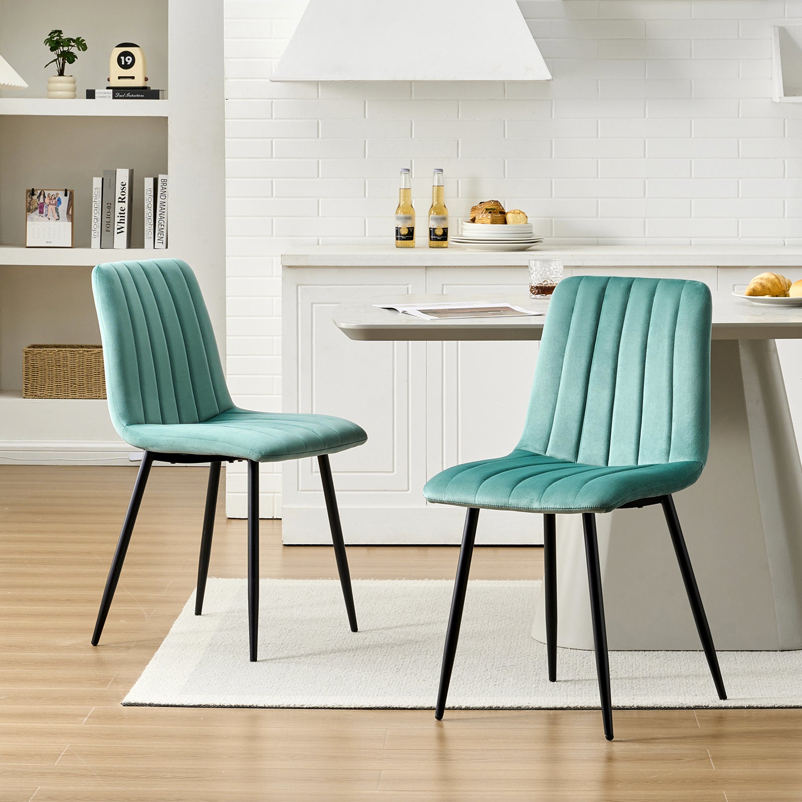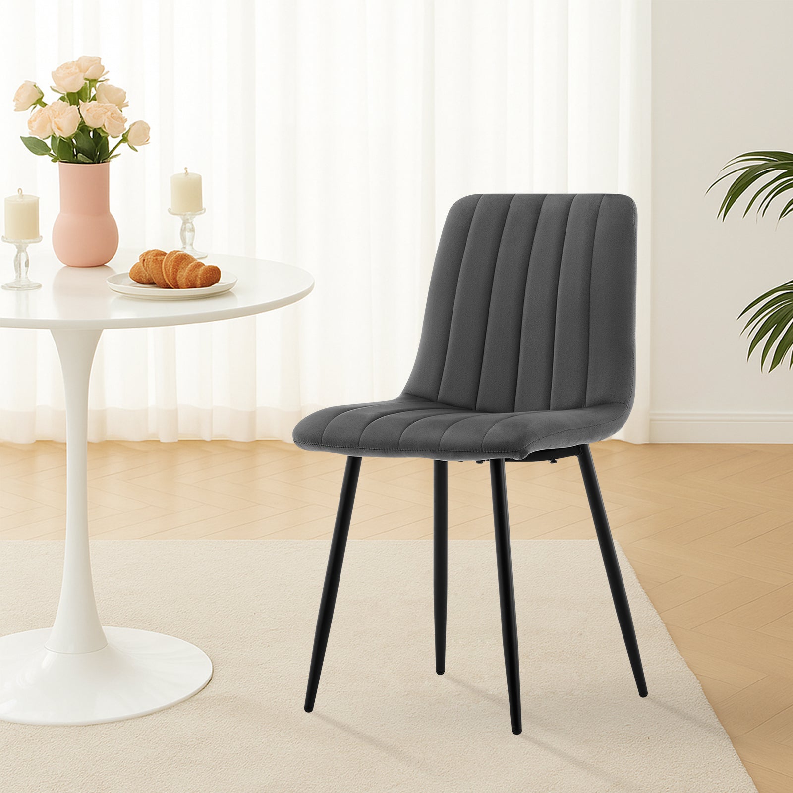 - Hochwertige Materialien: Unsere Esszimmerstühle bestehen aus hochwertigem Samt, der bequem und hautfreundlich ist und ein weiches und angenehmes Sitzgefühl bietet. Die exquisiten Nähte zeigen ein modernes und stilvolles Design und verleihen Ihrem Esszimmer eine elegante Atmosphäre.