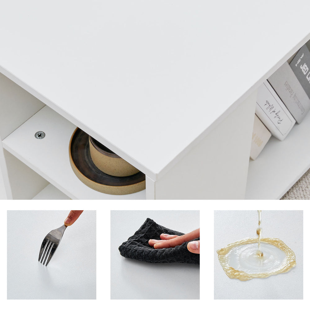 Er ist aus MDF gefertigt, verschleißfest, wasserdicht und leicht zu reinigen.