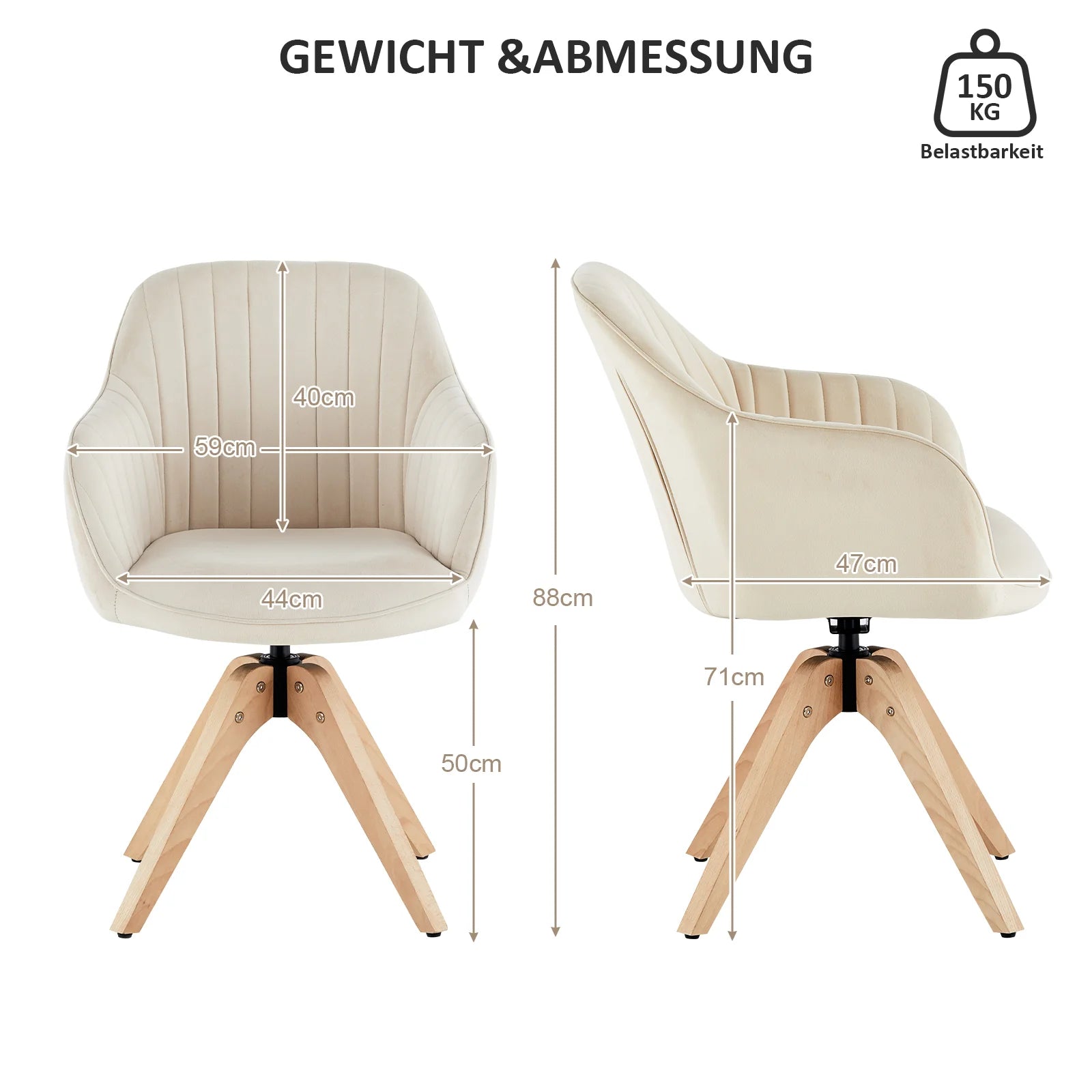 Der Noa Drehstuhl verbindet eine weiche 7-cm-Polsterung mit einem samtigen Bezug, der sich angenehm warm und geschmeidig anfühlt. Dank der 360°-Drehfunktion bleiben Sie am Tisch flexibel – beim Essen, Arbeiten oder langen Gesprächen.