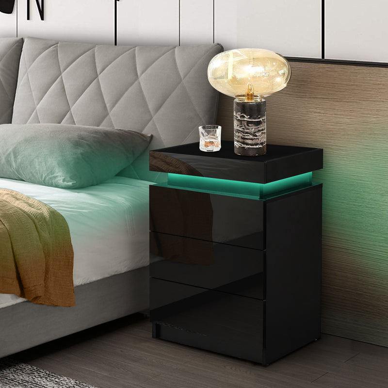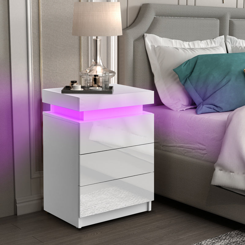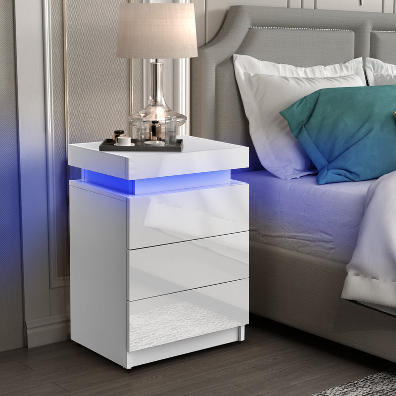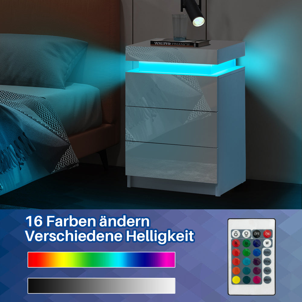 Kumar Nachttisch mit LED-Licht [3 Schubladen]