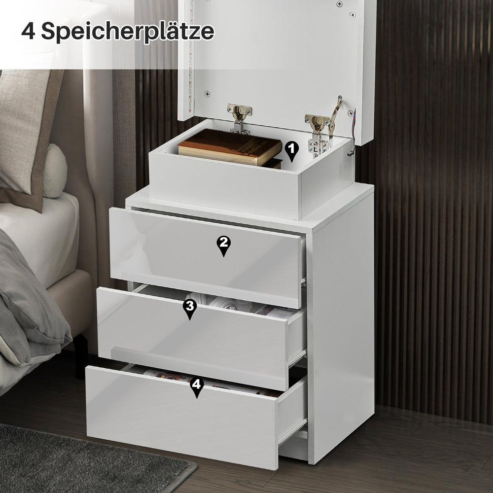 Nachttisch mit drei Schubladen und einem versteckten Stauraum.