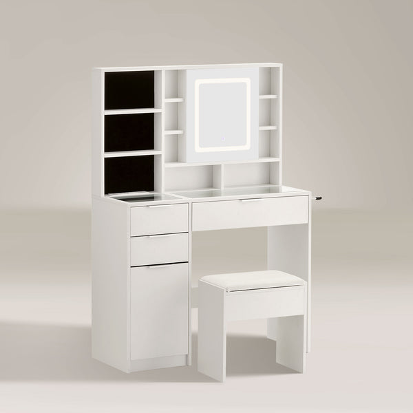 Anier Schminktisch-Set Weiß mit Spiegel, LED Beleuchtung und Hocker