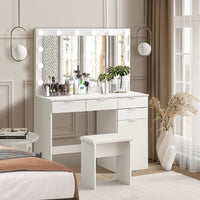 Hollywood Schminktisch-Set Weiß mit Spiegel, LED Beleuchtung und Hocker