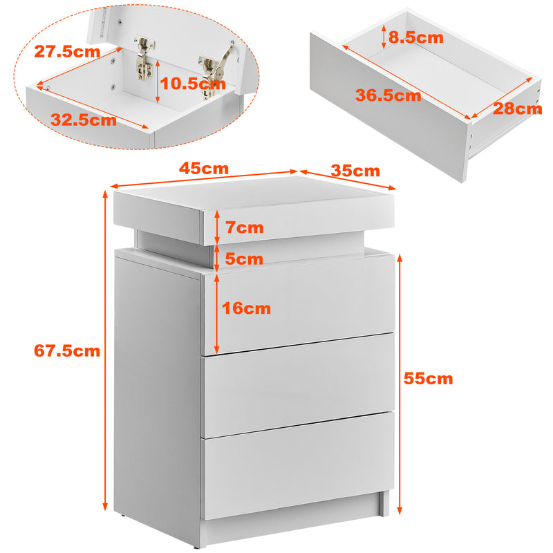 Kumar Nachttisch mit LED-Licht [3 Schubladen]