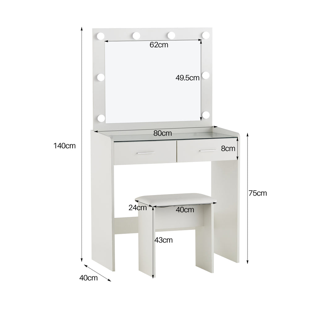 Meya Schminktisch-Set Weiß mit LED Beleuchtung, Spiegel und Hocker