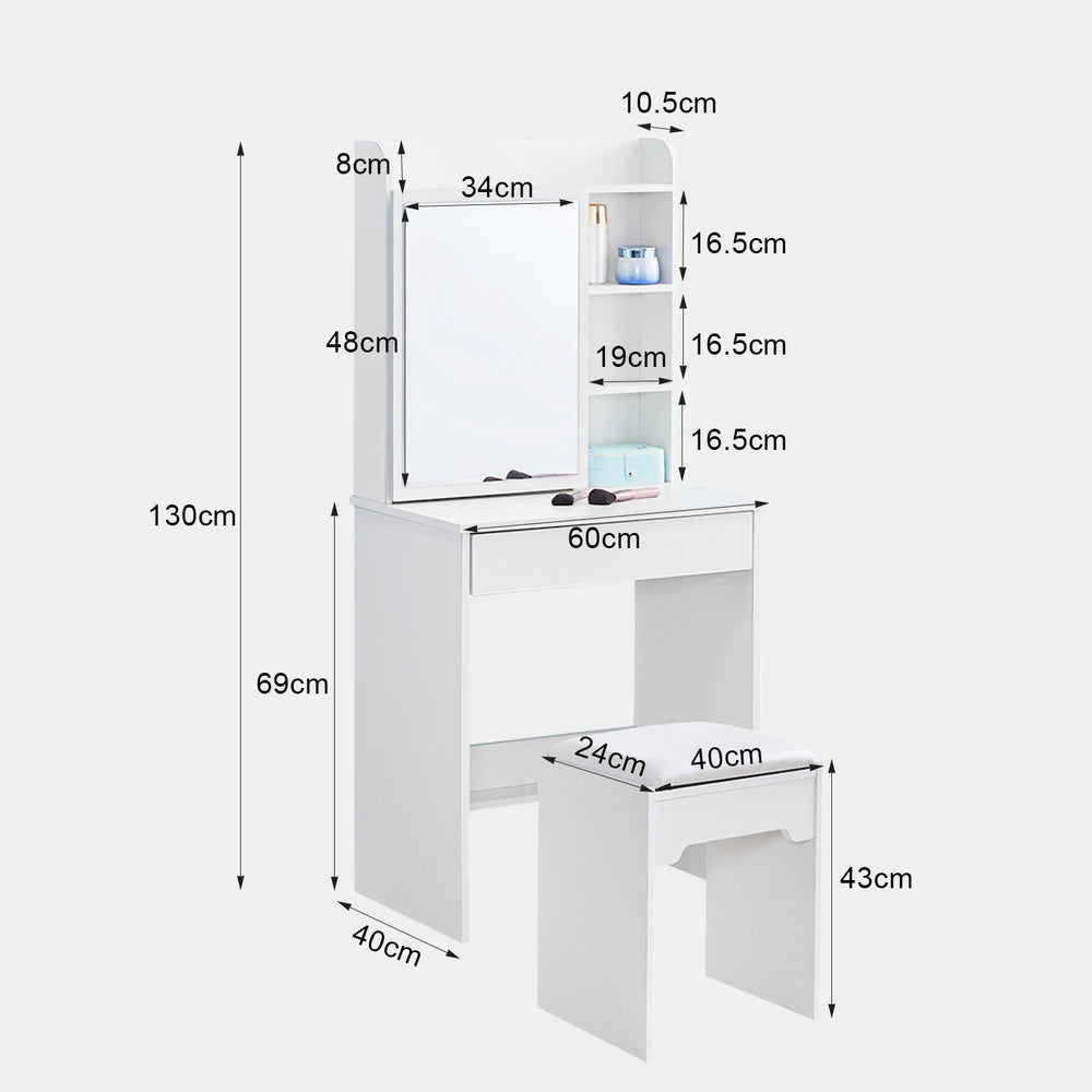 Eine große Schublade und mehrere Unterteilungen bieten reichlich Stauraum für Kosmetika. Die 60 x 40 cm große Tischplatte bietet ausreichend Platz für Ihre tägliche Lotion, flüssiges Make-up und andere häufig verwendete Kosmetika sowie Lieblingsornamente.