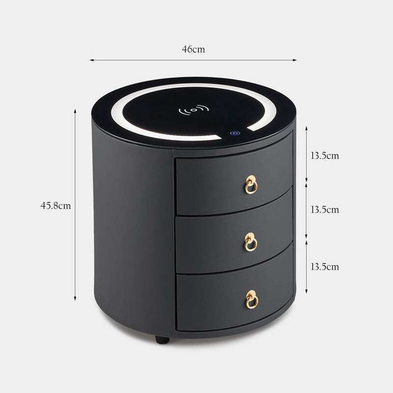 Runder Nachttisch mit LED-Licht und kabelloses Laden [3 Schubladen]