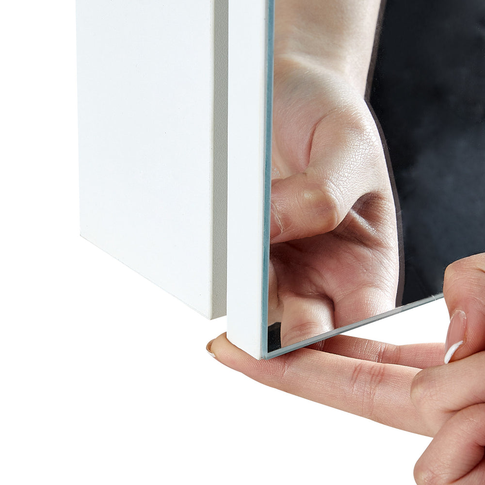 - HD Glas Silber Spiegel: Dieser Badezimmerschrank nimmt hochwertigen Glas Silber Spiegel, das Bild ist klar und nicht verzerrt. Dieses grifflose Design macht den ganzen Spiegel stilvoller und eleganter.