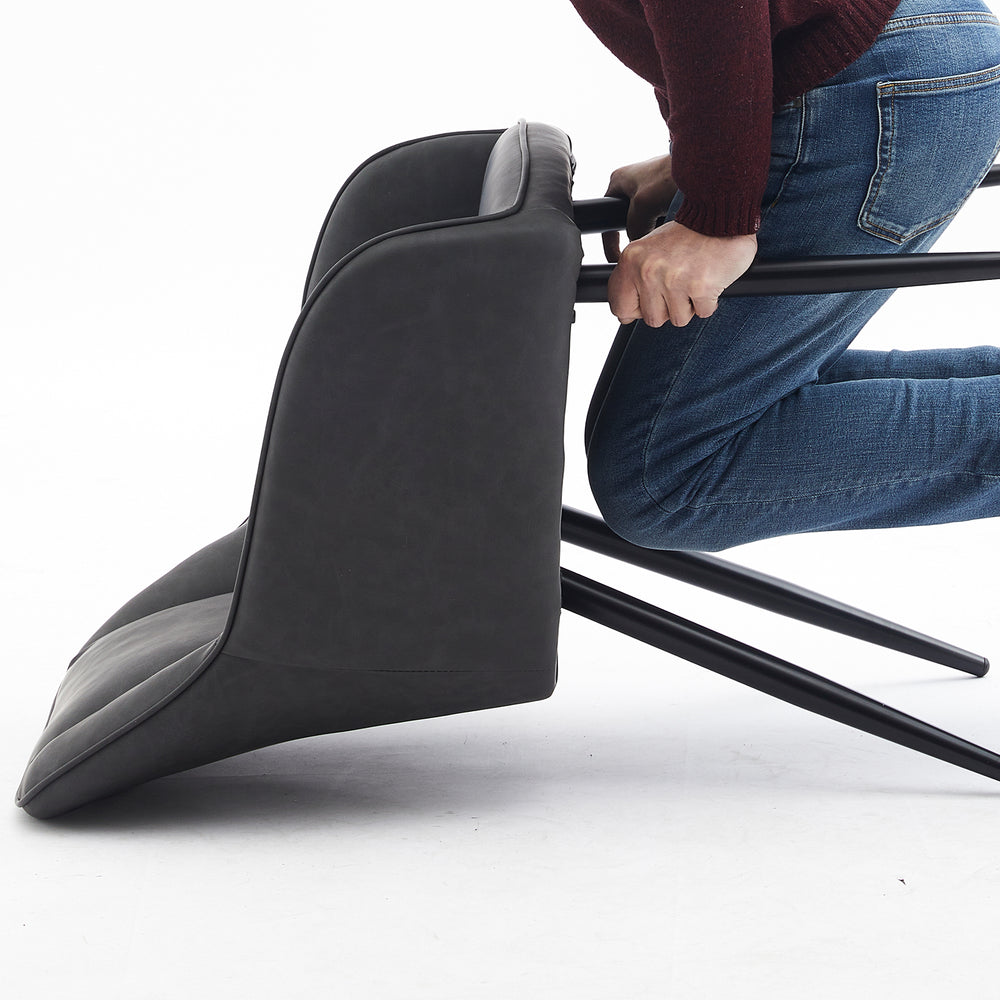Sein Rahmen besteht aus einer Mischung aus Kunstleder und verfügt über eine mattschwarze Metallbasis mit Haarnadelbeinen für einen eleganten Look.