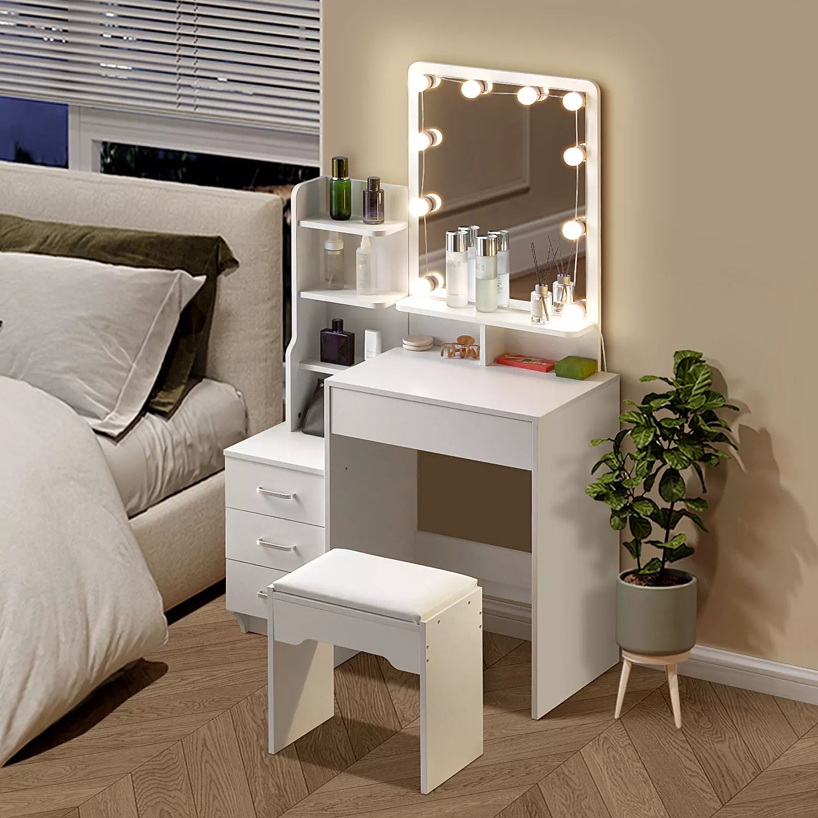 Dieser Schminktisch ist vielseitig einsetzbar und passt perfekt in Ankleidezimmer, Schlafzimmer, Fotostudios und viele andere Räumlichkeiten.