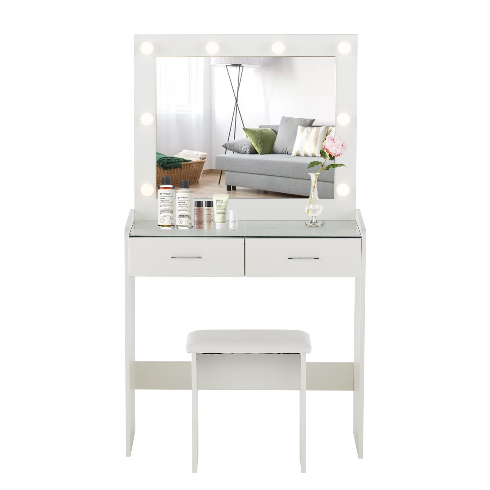 LED-Beleuchtung: Der Schminktisch ist sauber mit LED-Lampen am Rand des Spiegels ausgestattet. Die LED-Leuchten haben CE- und RoHS-Zertifizierungen. Diese Lichter strahlen weiches Licht aus. Sie können das weichste Licht nach Ihren Make-up-Anforderungen anpassen.