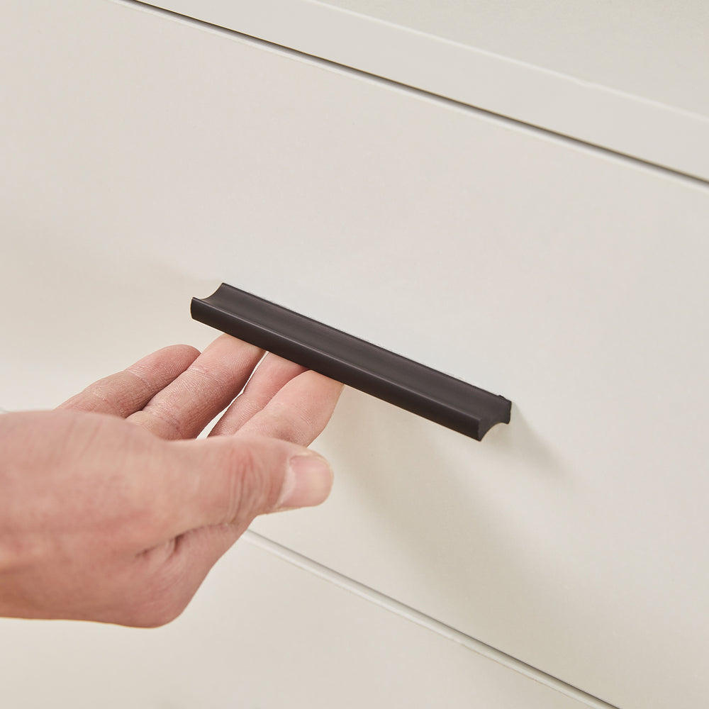Die Schubladen sind mit schwarzen Griffen versehen, die für eine stilvolle Schlichtheit sorgen.