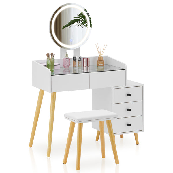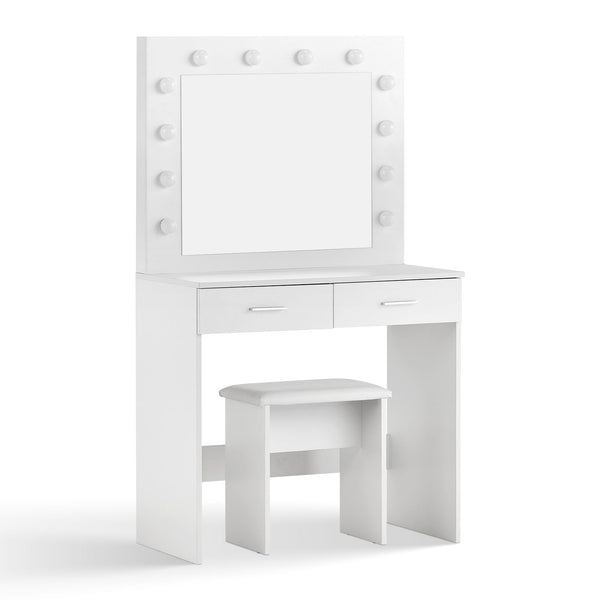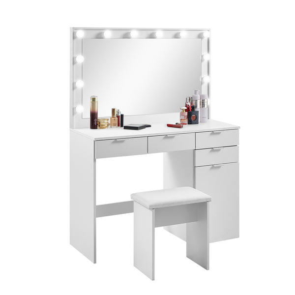 Marilee LED Touch Schminktisch Set mit Beleuchtung und Spiegel und Hocker Weiß