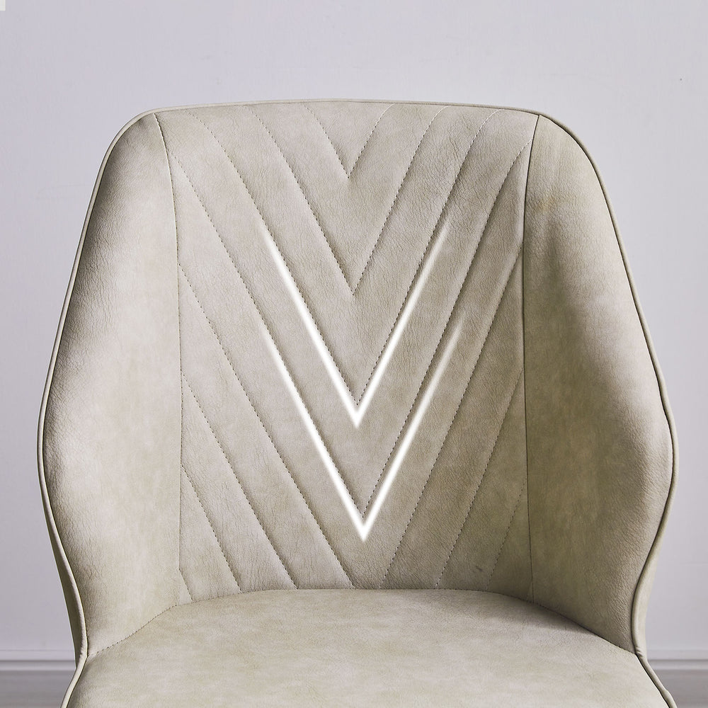 Die Rückenlehne des Esszimmerstuhls ist mit einer V-förmigen Naht versehen, die für Schlichtheit und Schönheit sorgt.