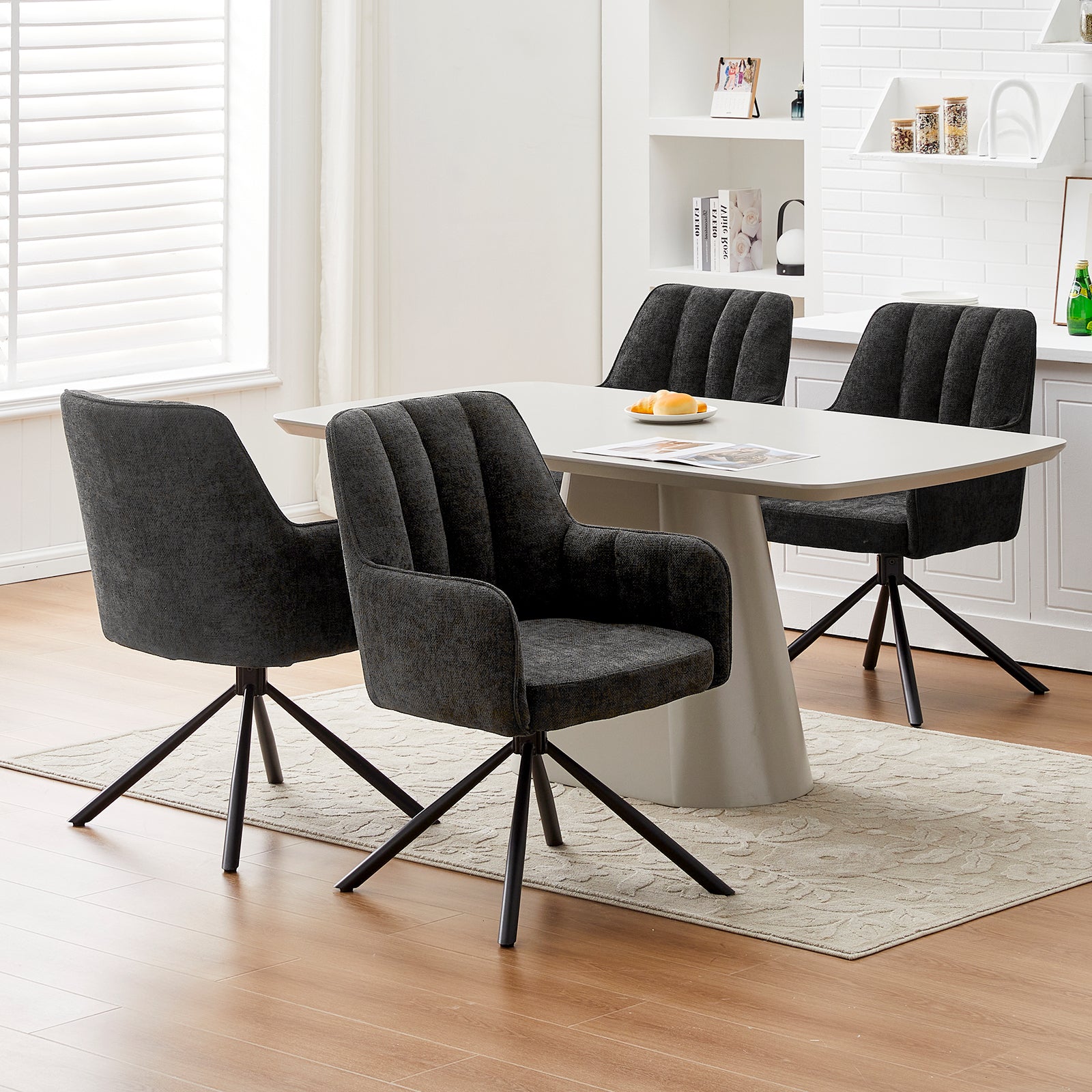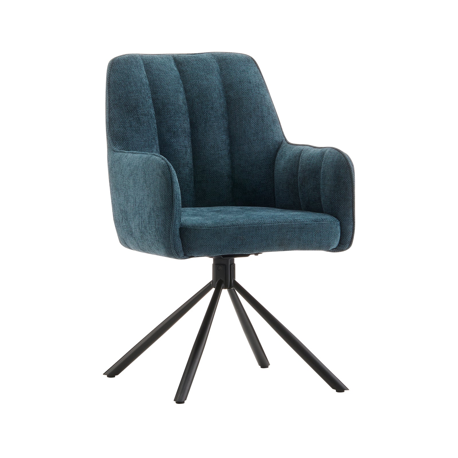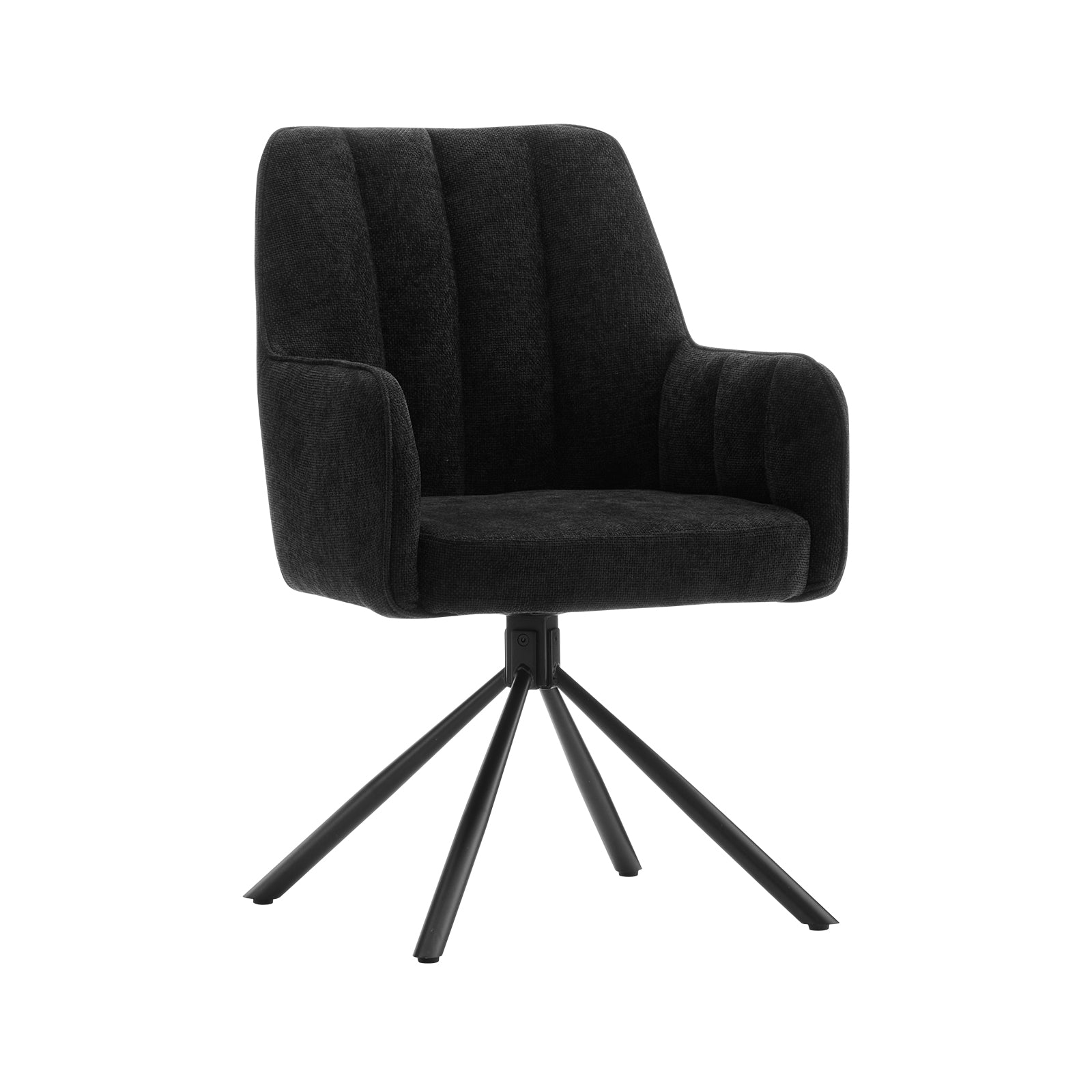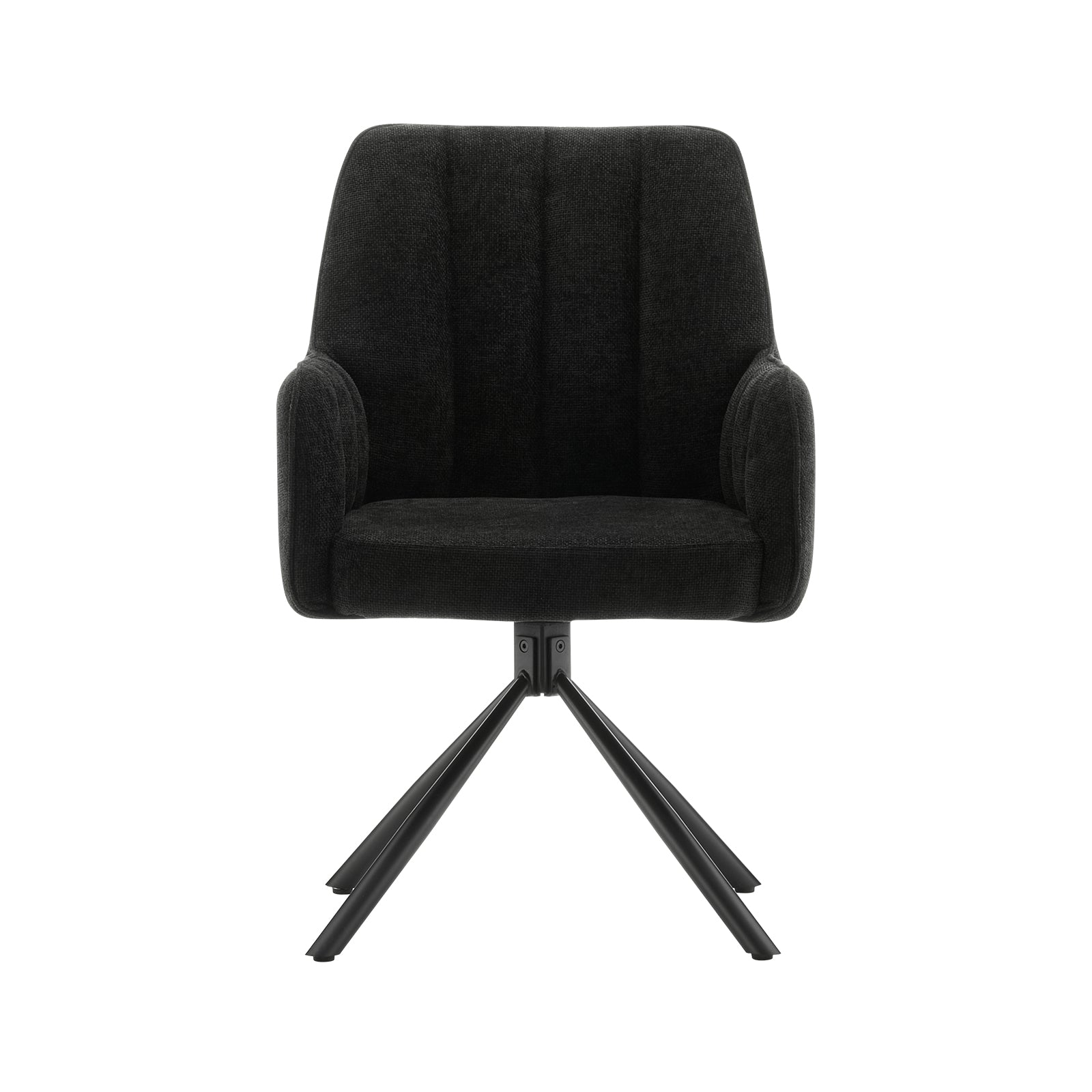 Das schwarze Untergestell verleiht dem Drehstuhl einen klaren, modernen Look. Die vier stabile Beine garantieren festen Stand, ohne dabei klobig zu wirken. Minimalistisch, aber mit Wirkung.