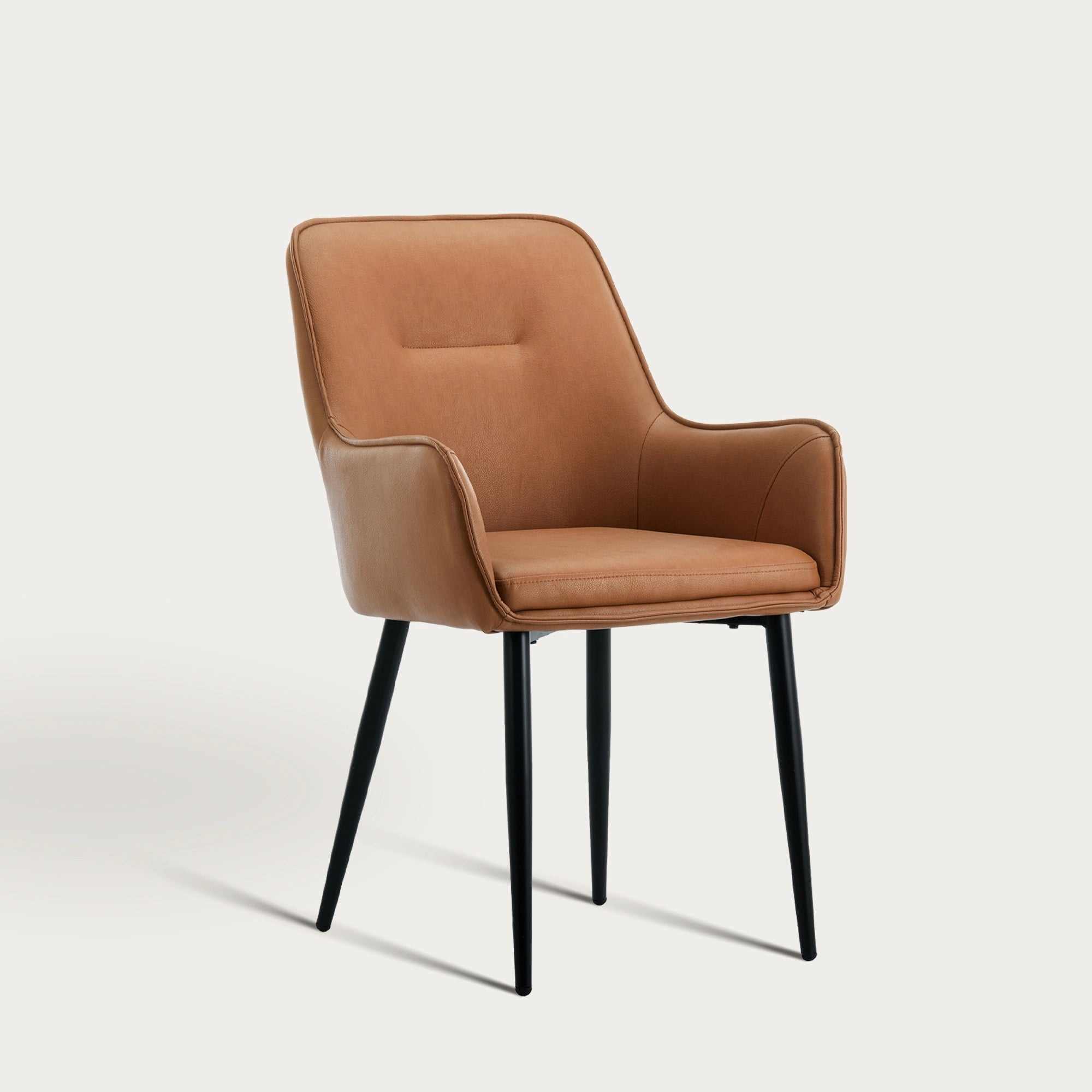 Sitz und Rückenlehne dieses Akzentstuhls sind mit Schaumstoff gepolstert und mit Kunstleder bezogen, das großen Komfort bietet, während Sie sich zurücklehnen und entspannen.